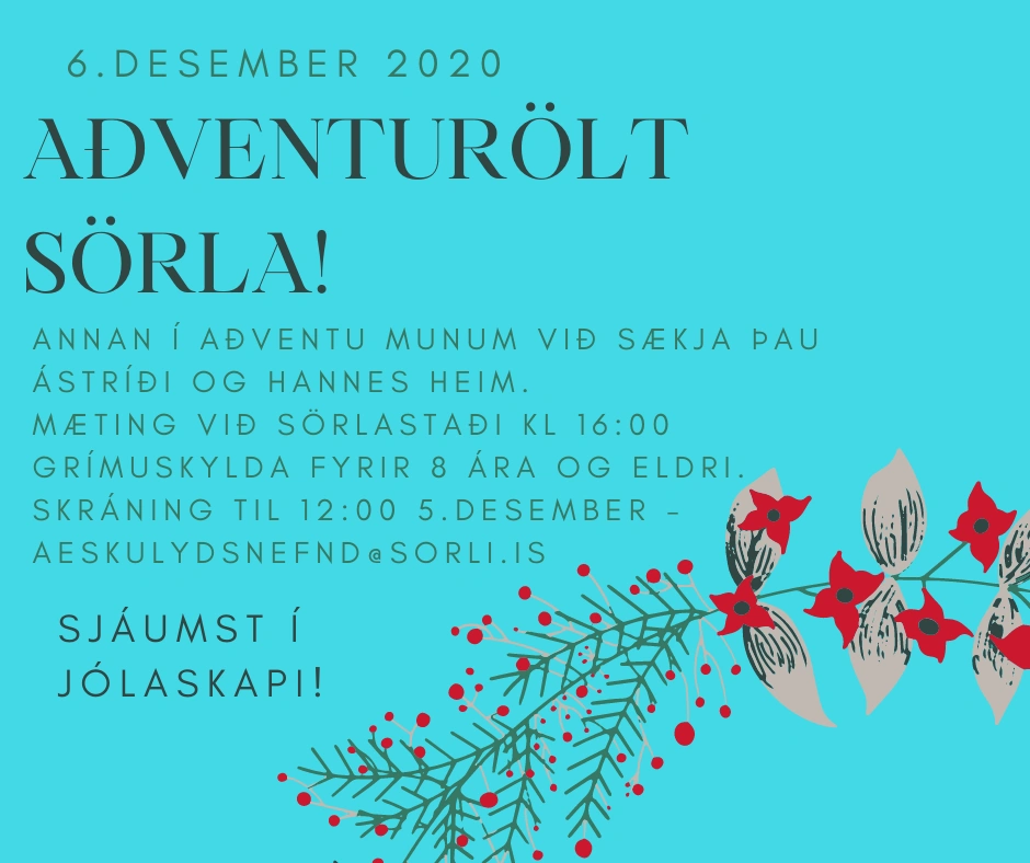 Annan i aðventu munum við sækja þau Ástríði og Hannes heim. Mæting við Sörlastaði kl. 16:00. Grímuskylda fyrir 8 ára og eldri. Skráning til 12:00 þann 5. desember.Sjáumst í jólaskapi !Æskulýðsnefnd