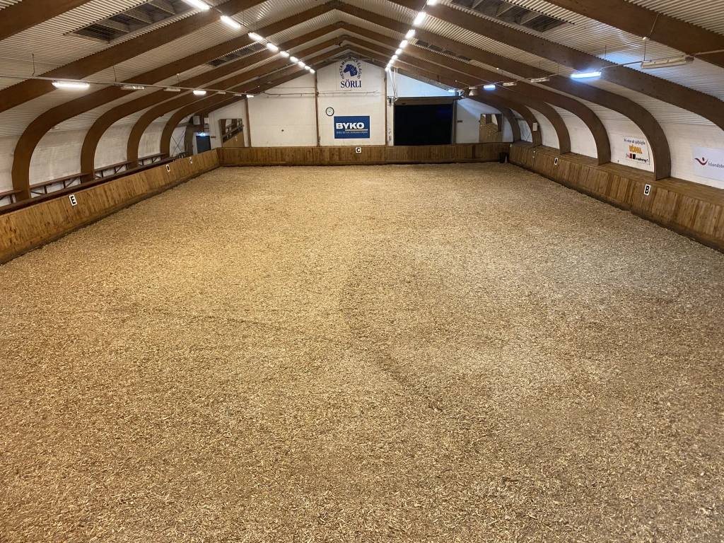 Búið er að opna höllina, en það er ekki komið nýtt efni, gólfið er því mjög efnislítið.Knapar vinsamlegast farið varlega.