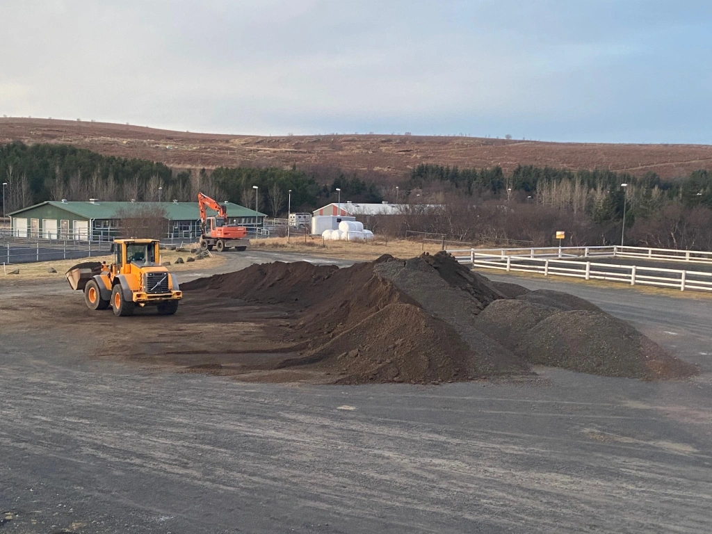 Við viljum biðja alla reiðmenn að sýna þessari vinnu þolinmæði því þetta er hagur okkar allra. Planið á milli reiðhallarinnar og hvíta tamningagerðisins verður notað undir efni og því keyrt þaðan út. Það verður því töluvert rask og mikið um vörubíla og allskyns tæki á svæðinu okkar.