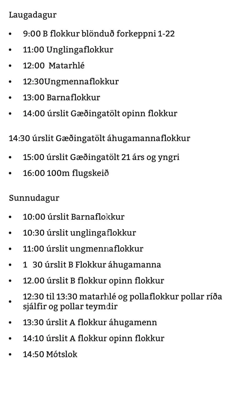 Gæðingamót - Dagskrá laugardag og sunnudag