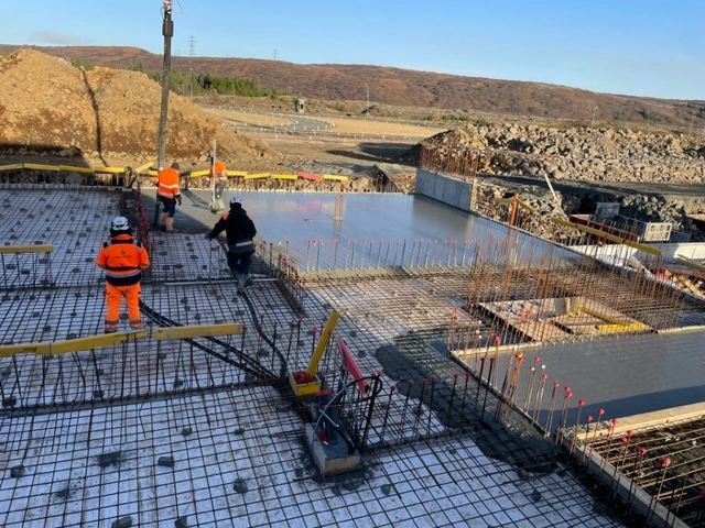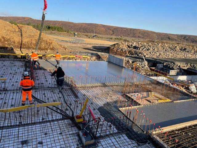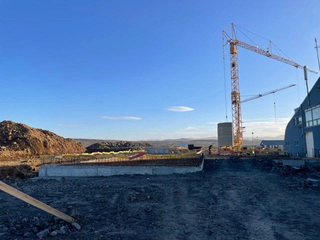 Mikil umsvif og gríðaleg umferð stórra ökutækja er í og við byggingasvæði reiðhallarinnar.