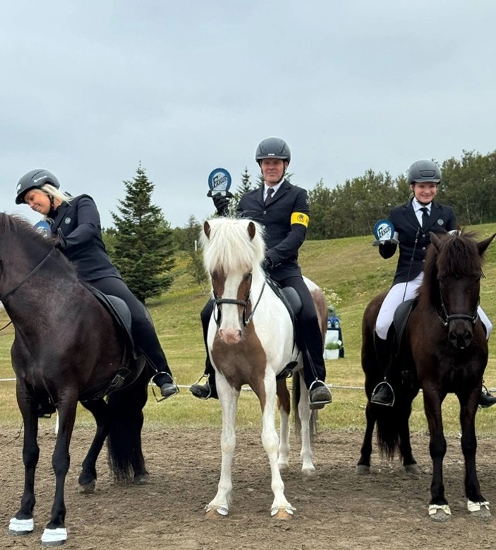 Sara mætti einnig í aðrar greinar en hún var skráð í Tölt T1, Fjórgang V2 og Fimmgang F1. Í Fjórgangi V2 mætti hún með hestinn Gamm frá Efri- Brúnavöllum 1, þau stóðu efst eftir forkeppni með einkunina 6.30. í A-úrslitum náðu þau að halda sínu sæti og hrepptu því fyrsta sætið með sömu einkunn. Í Fimmgang F1 mætti hún með glæsigæðinginn hann Kvist frá Reykjavöllum og voru þau í 7. sæti eftir forkeppni með einkunina 6.33. Í B-úrslitum voru þau í svaka stuði og sigruðu þau með glæsibrag með einkunina 6.71. Sara var samt ekki hætt, í A-úrslitum gerðu þau sér lítið fyrir og hækkuðu sig um tvö sæti til viðbótar og enduðu í 4. sæti með einkunina 6.76. Einstaklega gott mót hjá Söru Dís!