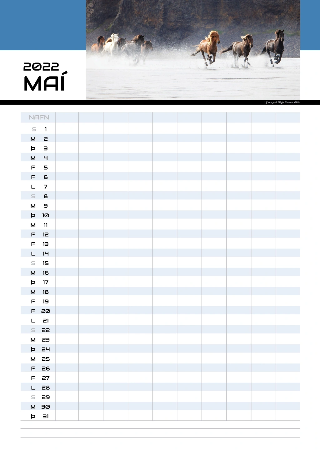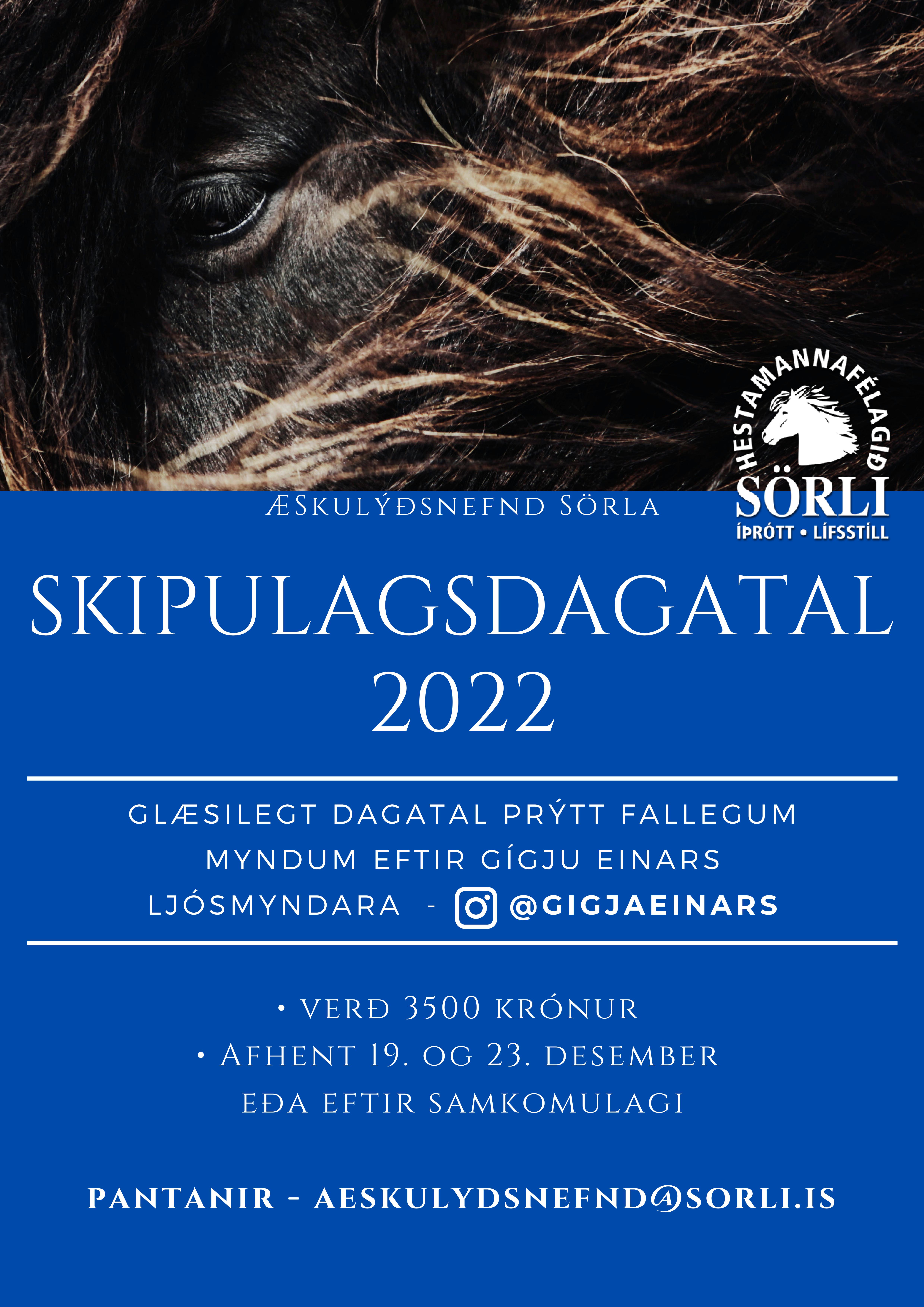 Skipulagsdagatal 2022 Glæsilegt dagatal prýtt fallegum myndum eftir Gígju Einars ljósmyndaraVerð 3500 krónurAfhent 19. og 23. desember eða eftir samkomulagiPantanir - aeskulydsnefnd@sorli.is