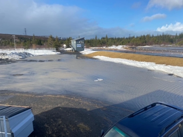 Við vitum að vellirnir geta verið tiltölulega fljótir að jafna sig en planið fyrir utan reiðhöllina er allsvakalegt og erfitt væri fyrir áhorfendur að athafna sig á því eins og það er núna.
