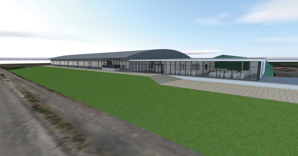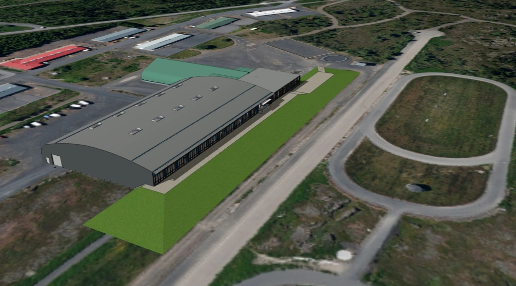 Mynd af fyrirhugaðri byggingu, ekki er um endanlegt útlit að ræða.