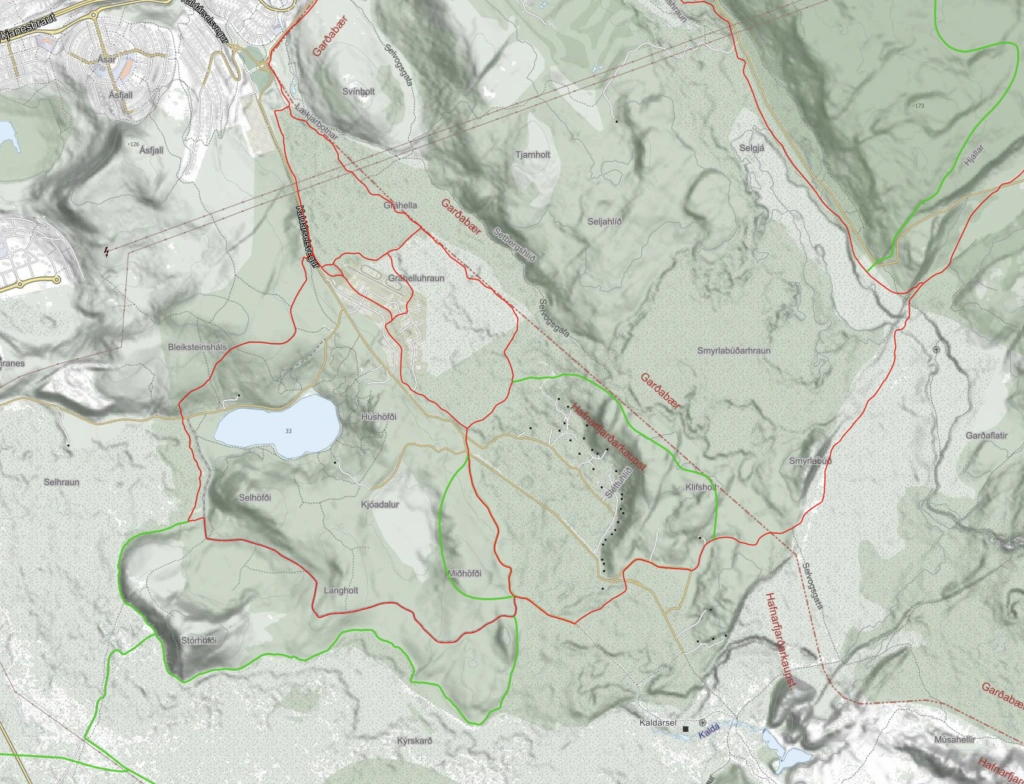 Reiðleið um Smyrlabúðahraun sem tengir Sörlasvæðið við reiðleiðir í Heiðmörk.