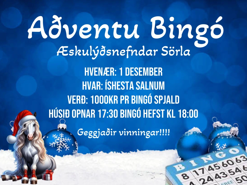 Þann 1. desember mun Æskulýðsnefnd Sörla halda Aðventu Bingó í Íshesta salnum.