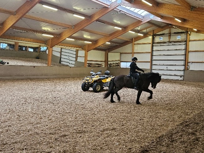Hópurinn lagði snemma af stað laugardagsmorgni og ferjuðu hesta sína á Árbakka og byrjuðu í kennslu strax kl 10 um morguninn. Krakkarnir voru öll í einkatímum hjá Jóhönnu og fylgdust með tímunum hjá hvort öðru. Kennsla stóð yfir allan daginn með smá hádegispásu þar sem krakkarnir gæddu sér á dýrindis kjúklingasúpu og meðlæti frá Stebbu okkar í Sörla og sló súpan verulega í gegn. Tímarnir á laugardeginum gengu vel þar sem Jóhanna Margrét kynntist nemendum og hestunum þeirra.