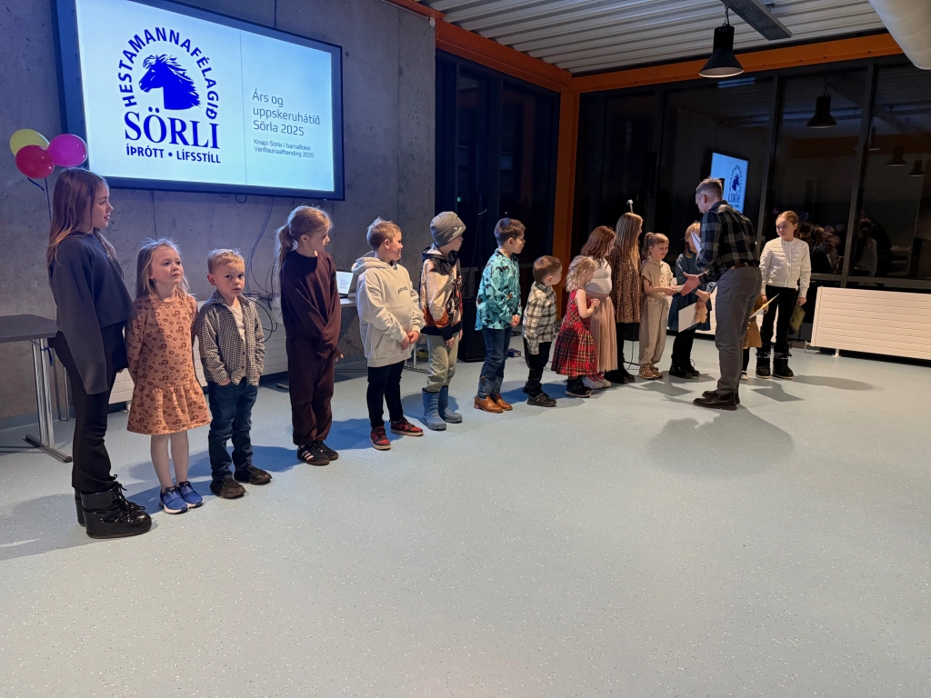 Um leið og að við óskum verðlaunahöfum innilega til hamingju þökkum við öllum fyrir komuna. Að auki langar okkur að þakka öllu unga fólkinu okkar fyrir að gera félagsstarf Sörla jafn innihaldsríkt og skemmtilegt og það er í dag. Sörli er svo sannarlega félag sem sameinar kynslóðir. Það er virkilega skemmtilegt að sjá reiðgöturnar fullar af hressum krökkum strax á haustdögum.
