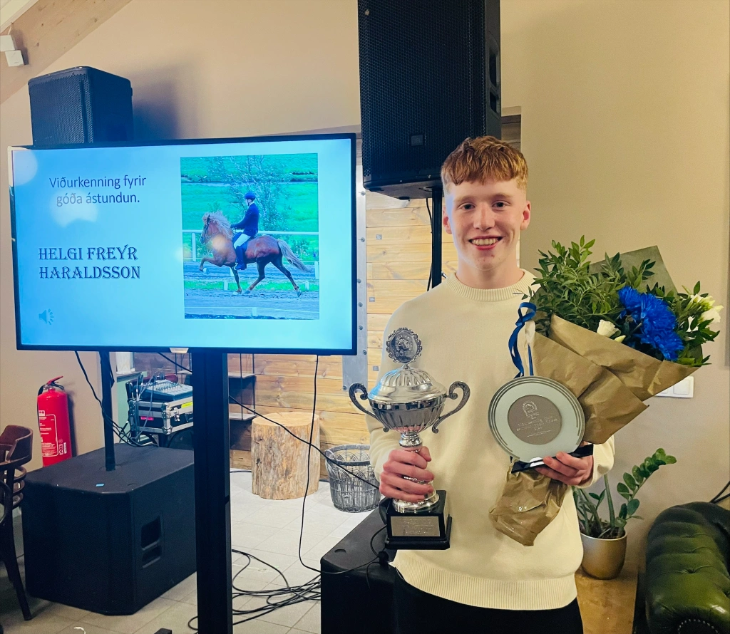 Árlega er síðan kosinn áhugasamasti unglingurinn en þau verðlaun eru veitt fyrir dugnað, áhuga, framfarir og það að vera góð fyrirmynd í hestamennsku. Að þessu sinni hlaut Helgi Freyr Haraldsson þá viðurkenningu.