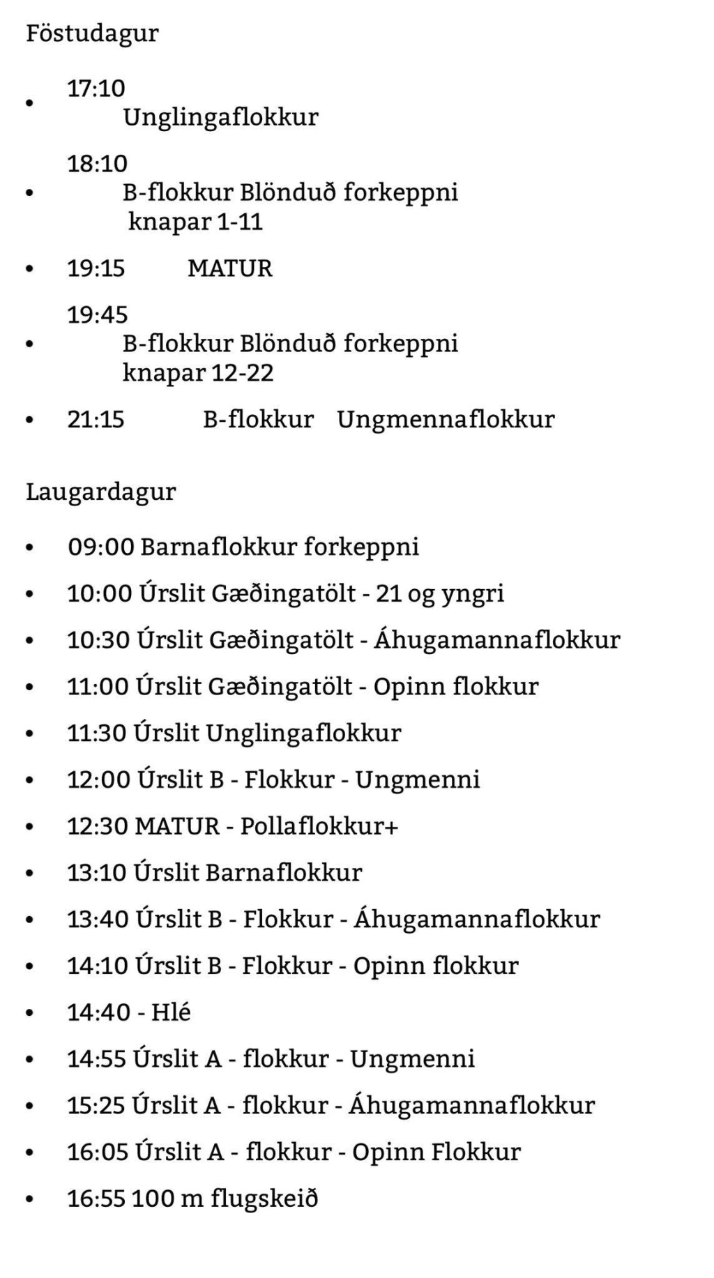 Við stefnum á það að byrja í dag með örlítilli seinkunn og færslu á barnaflokk til morguns, í von um að það lægi seinnipartinn, þetta er gert að ósk yfirdómara mótsins.