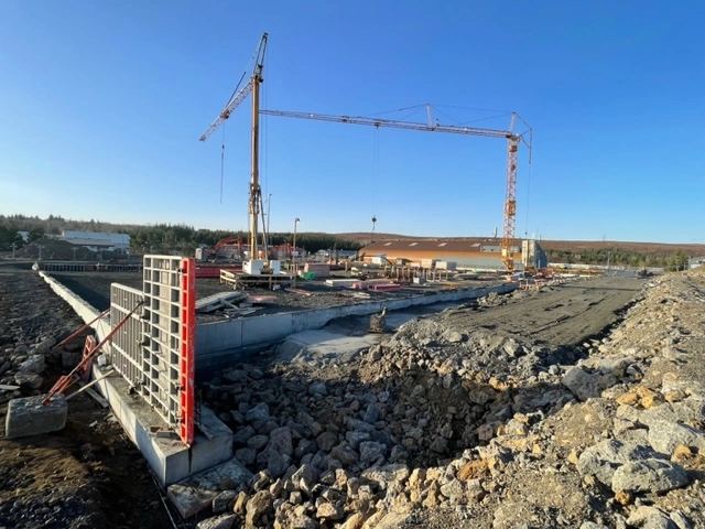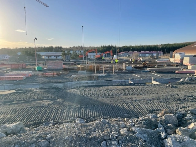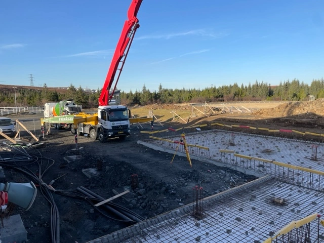 Mikil umsvif og gríðaleg umferð stórra ökutækja er í og við byggingasvæði reiðhallarinnar.