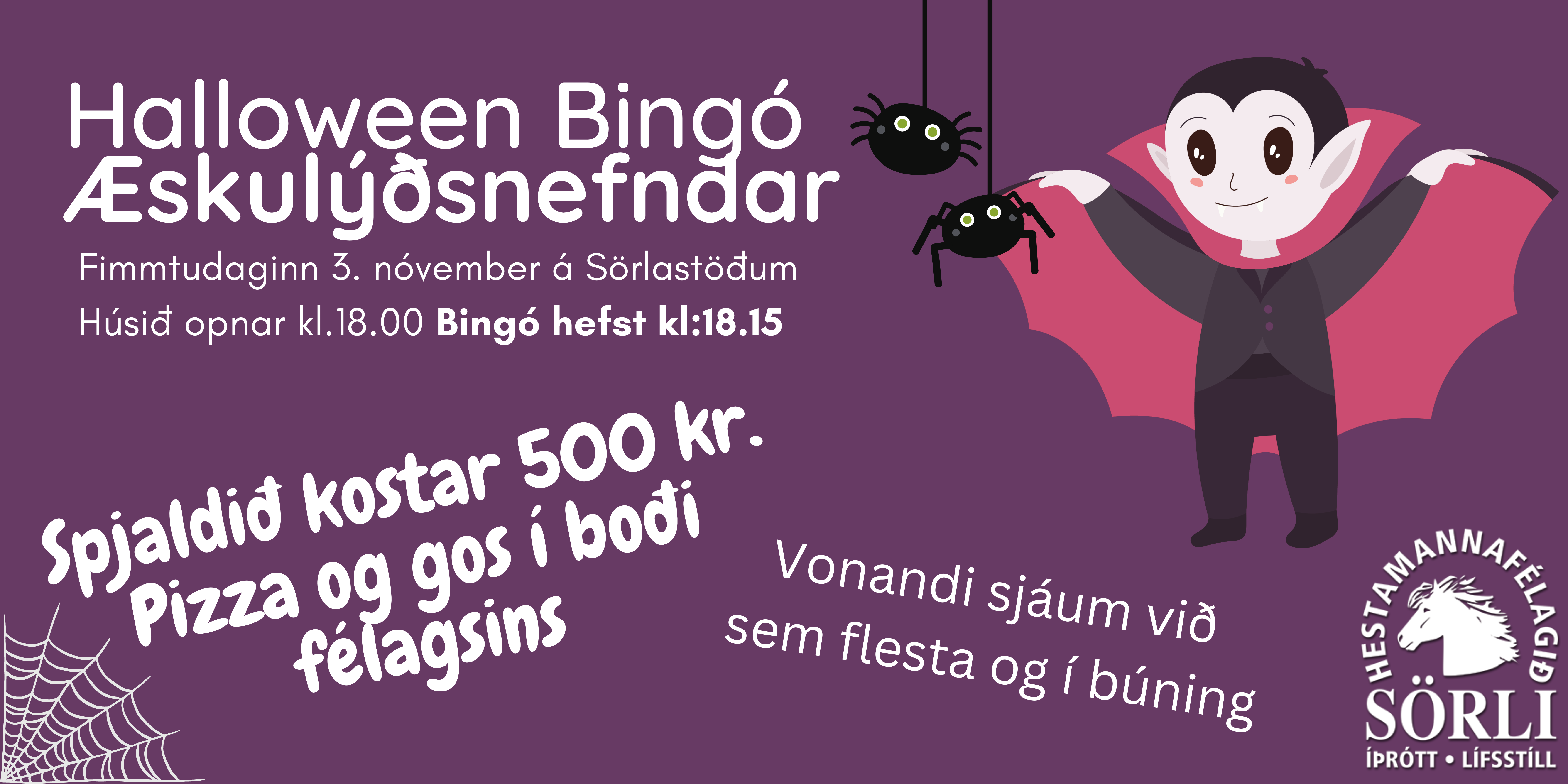 Við hvetjum alla til að mæta í búning og taka þátt í Halloween gleðinni með okkur, eftir bingóið verða pizzur og drykkir í boði félagsins.