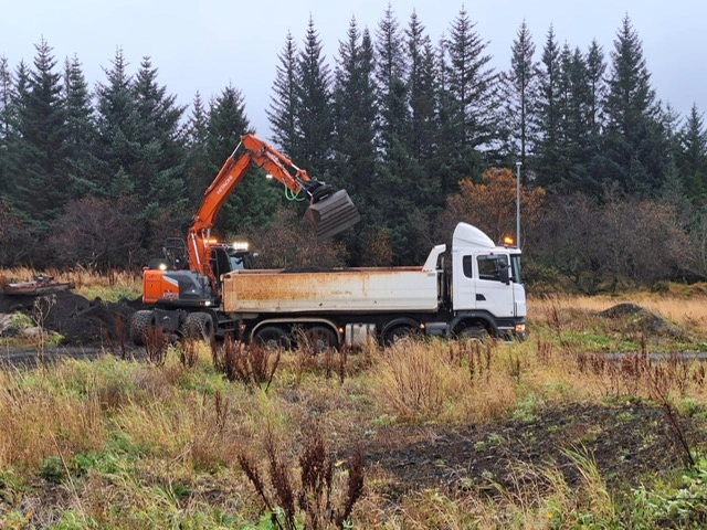 Verið er að keyra út efninu fyrir neðan Hlíðarþúfur.