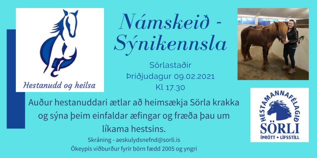 Auður hestanuddari ætlar að heimsækja Sörla krakka og sýna þeim einfaldar æfingar og fræða þau um líkama hestsins.
