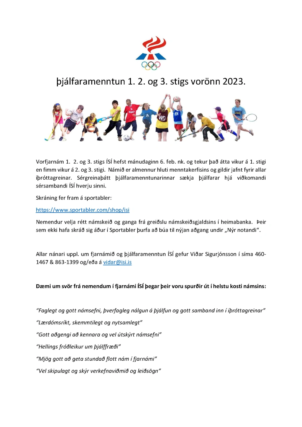 Vorfjarnám 1. 2. og 3. stigs ÍSÍ hefst mánudaginn 6. feb. nk. og tekur það átta vikur á 1. stigi en fimm vikur á 2. og 3. stigi.