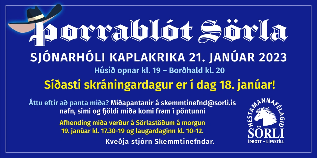 Þorrablót 2023 - Síðasti skráningardagur í dag 18. janúar