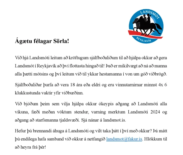 Það vantar kröftuga sjálboðaliða á Landsmót 2024